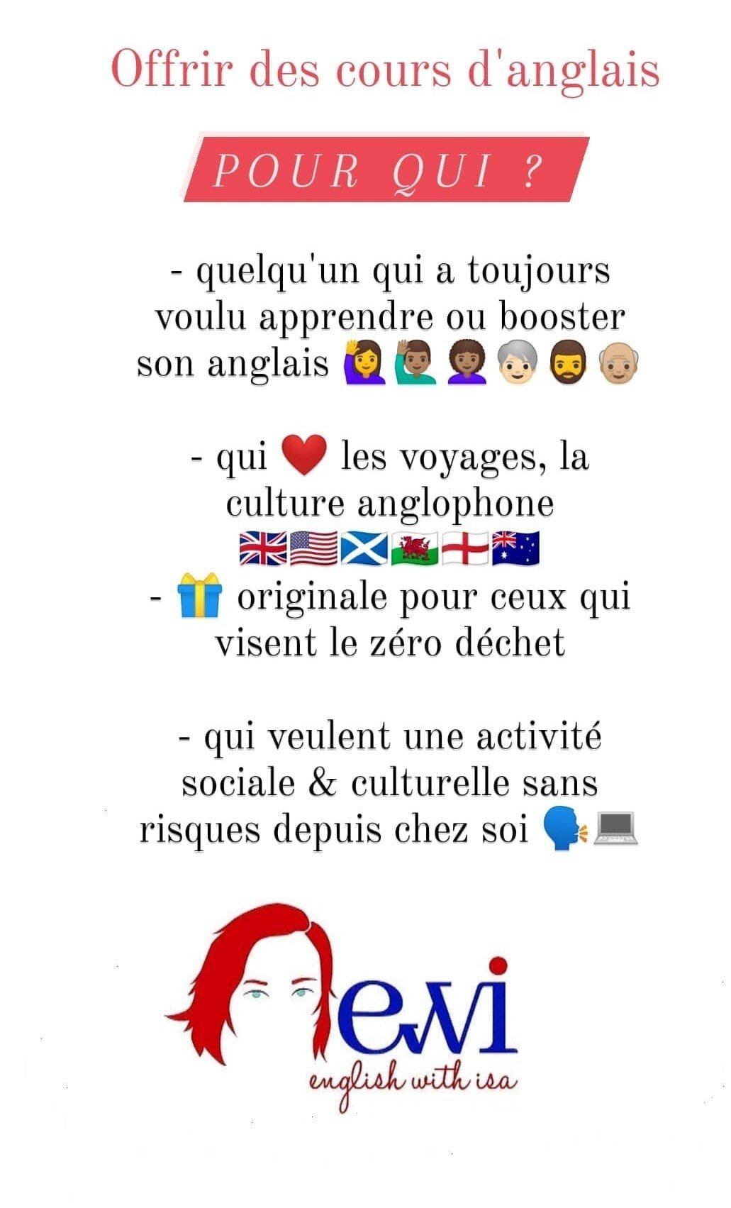 N'hésitez pas à me contacter par SMS ou par e-mail à isa @ englishwithisa.fr